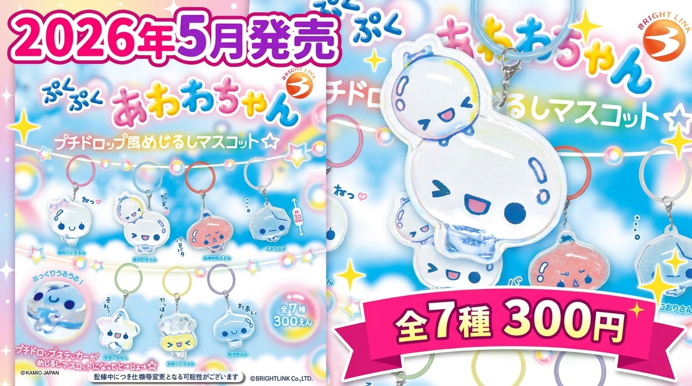 【新作】「ぷくぷくあわわちゃん」のプチドロップ風めじるしマスコットが2026年5月に発売決定!全7種の可愛すぎるラインナップをチェック