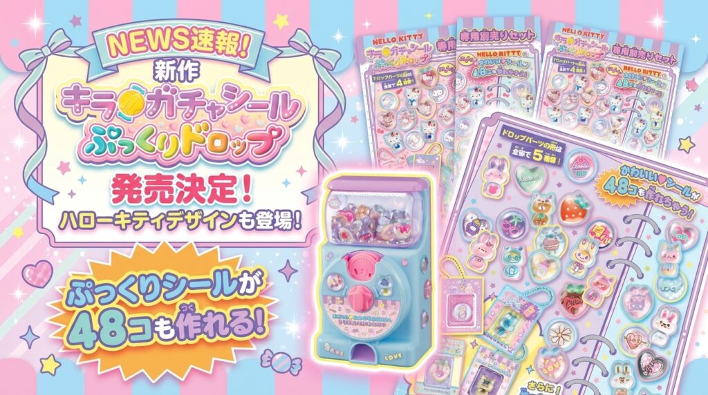 【新作】キラ★ガチャシール ぷっくりドロップの発売が決定!ハローキティデザインも登場!