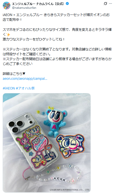 【無料配布】エンジェルブルー「ナカムラくん」のiAEON限定きらきらステッカーが可愛すぎると話題!確実にもらう方法を徹底解説