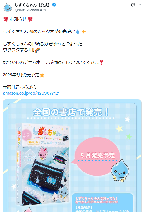 しずくちゃんの世界観がぎゅっと詰まったこのムック本は、単なる懐かしアイテムの復刻にとどまらず、大人の日常使いにも配慮された実用的な仕上がりになっています。予約開始直後からSNSなどでも話題となっており、完売が予想される注目商品です。